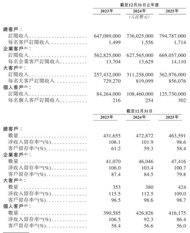 截至2025年12月31日,群核科技总客户数为463,591个,其中,企业客户47,416个,大客户424个,个人客户数为416,175个。